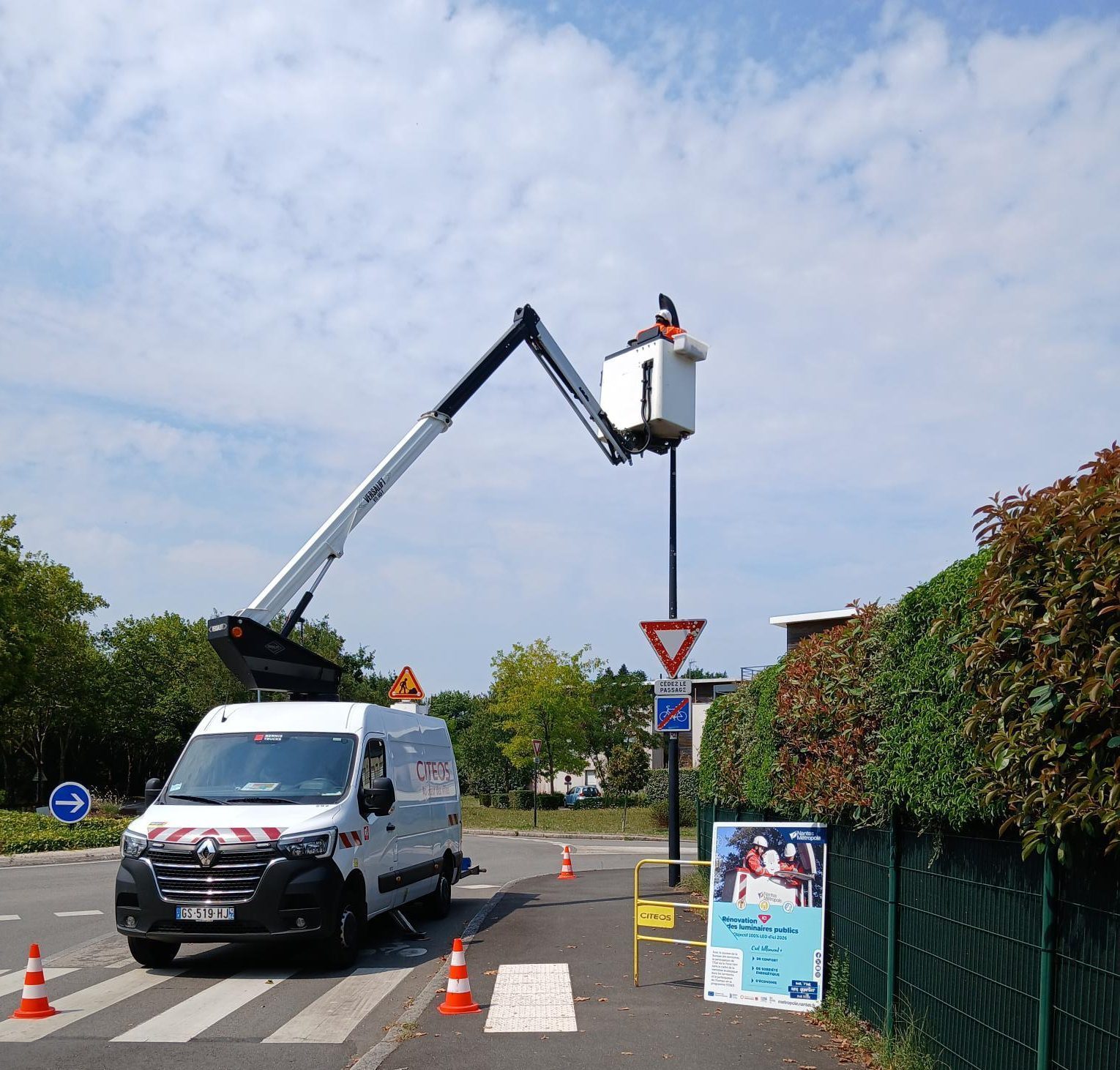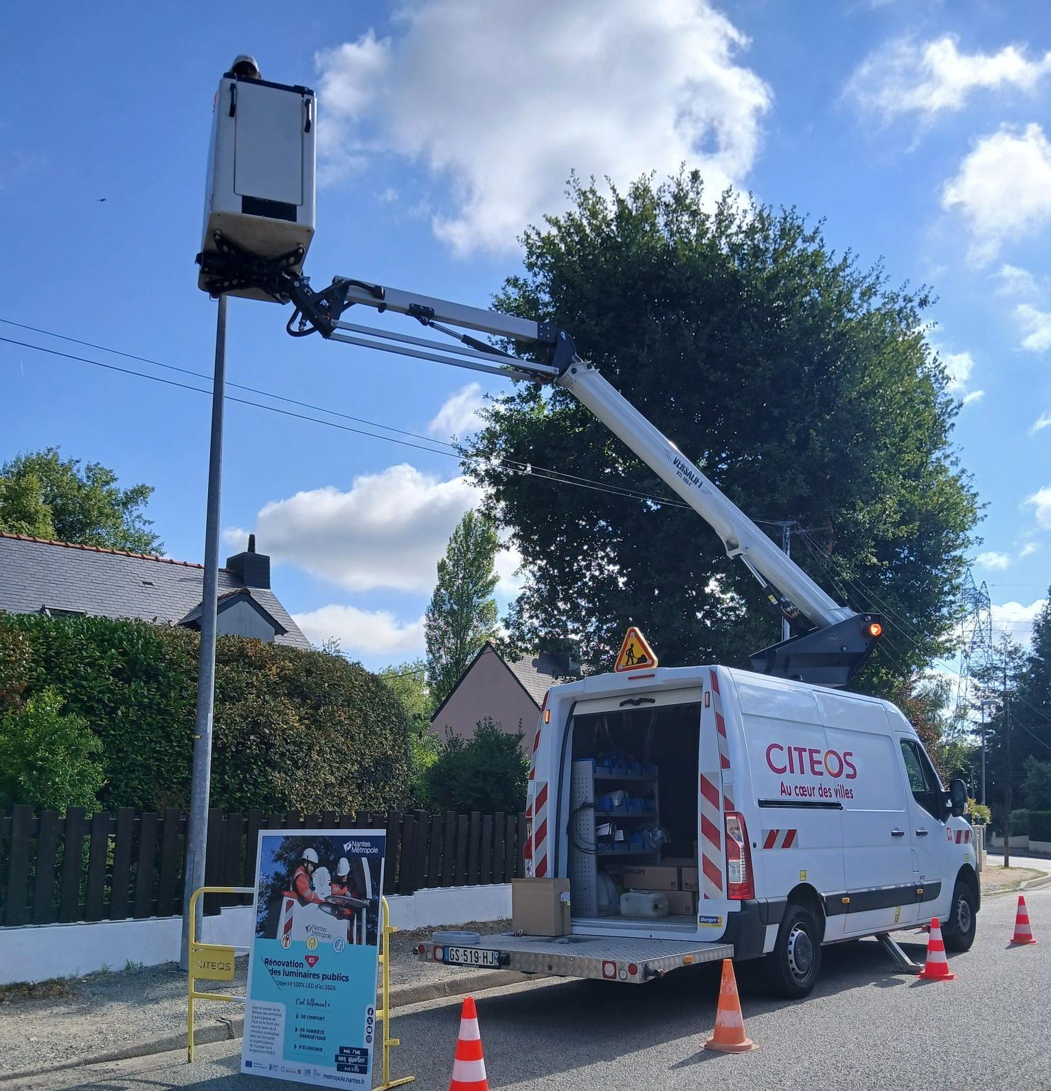 Les équipes de Citeos à Nantes sont intervenues sur quatre communes du Pôle Erdre & Cens (Sautron, La Chapelle-sur-Erdre, Orvault et Nantes) pour assurer le remplacement progressif des luminaires : changement de lanternes, opérations de rénovation et installation de sources LED performantes.