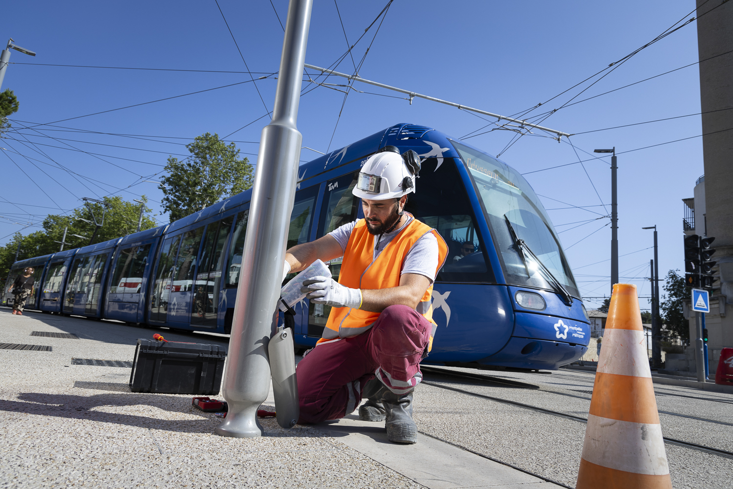 Nous intervenons en travaux et maintenance pour les collectivités mais aussi dans le cadre des lignes de tramway montpellierain ainsi que du Bus à Haut Niveau de Service de Béziers.